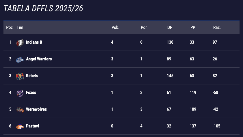 Pored vodećeg dvojca, svoj ritam polako pronalaze i Čačak Angel Warriorsi, koji su savladali Požarevac Pastuve sa 31:20, dok je Valjevo upisalo svoju prvu pobedu u sezoni – 20:6 upravo protiv tima iz Požarevca.